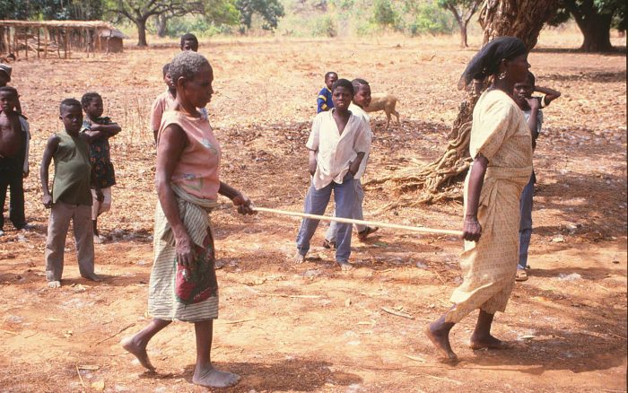 Blind Onchocerciasis sufferer being led